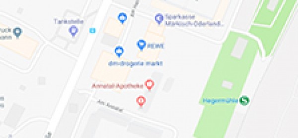 Unsere Praxis liegt direkt im Ärztehaus Am Annatal im 2. OG, ist sehr gut erreichbar - direkt am S-Bahnhof Hegermühle - ausreichend kostenlose Parkplätze stehen Ihnen zur Verfügung und mit dem Aufzug können Sie problemlos und barierrefrei bis zum Praxiseingang gelangen.